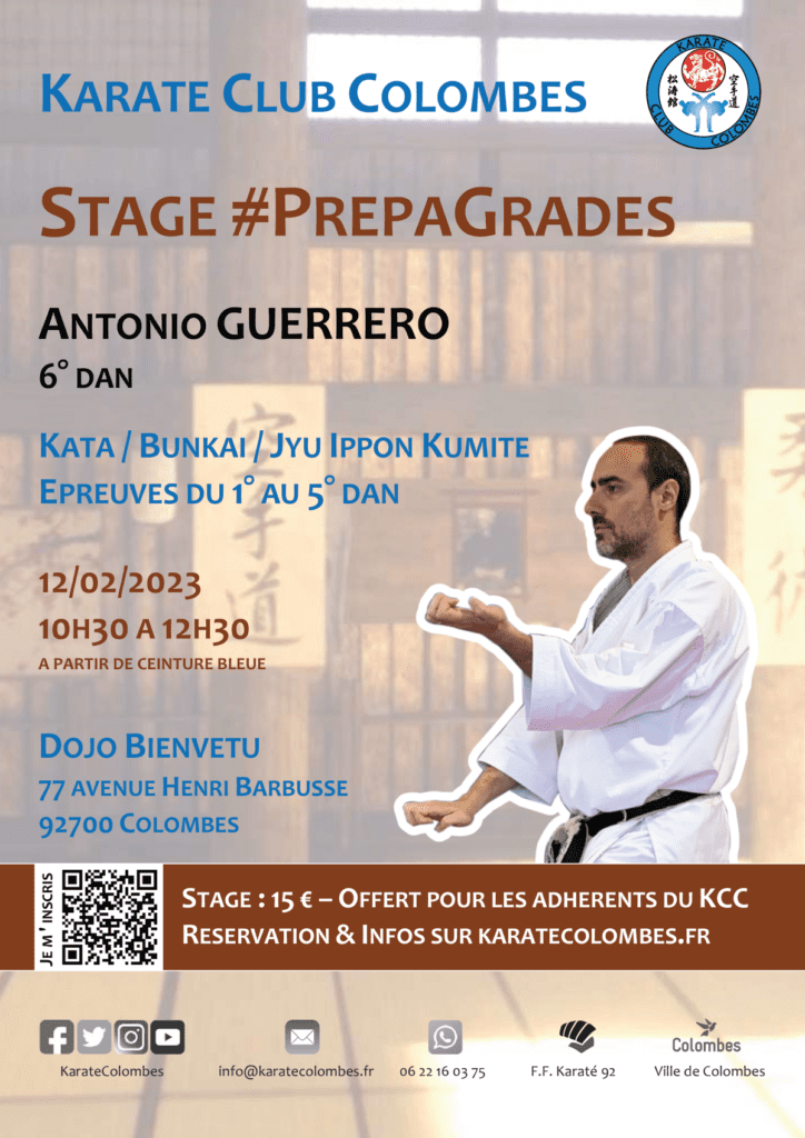 Les #PrepaGrades sont des stages de préparation aux passages de grades de karaté (kata / bunkai / kihon / kumite), sous la direction d’Antonio Guerrero (6°dan, BEES 2° degré). Ces cours sont ouverts à tous les styles à partir de la ceinture bleue (minimum 15 ans). Voir le programme #PrepaGrades de la saison.