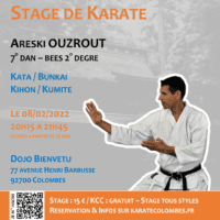 Le Karaté Club Colombes organise un stage de karaté #PrepaGrades. 👊🏻 Dirigé par Antonio Guerrero, 6° dan 📆 Dimanche 20 novembre 2022 de 10h30 à 12h30 🥋 Thème : Kata / Kihon / Ippon Kumite ⛩ Dojo Bienvetu – 77 Lire la suite Stage karaté #PrepaGrades le 20-11-2022